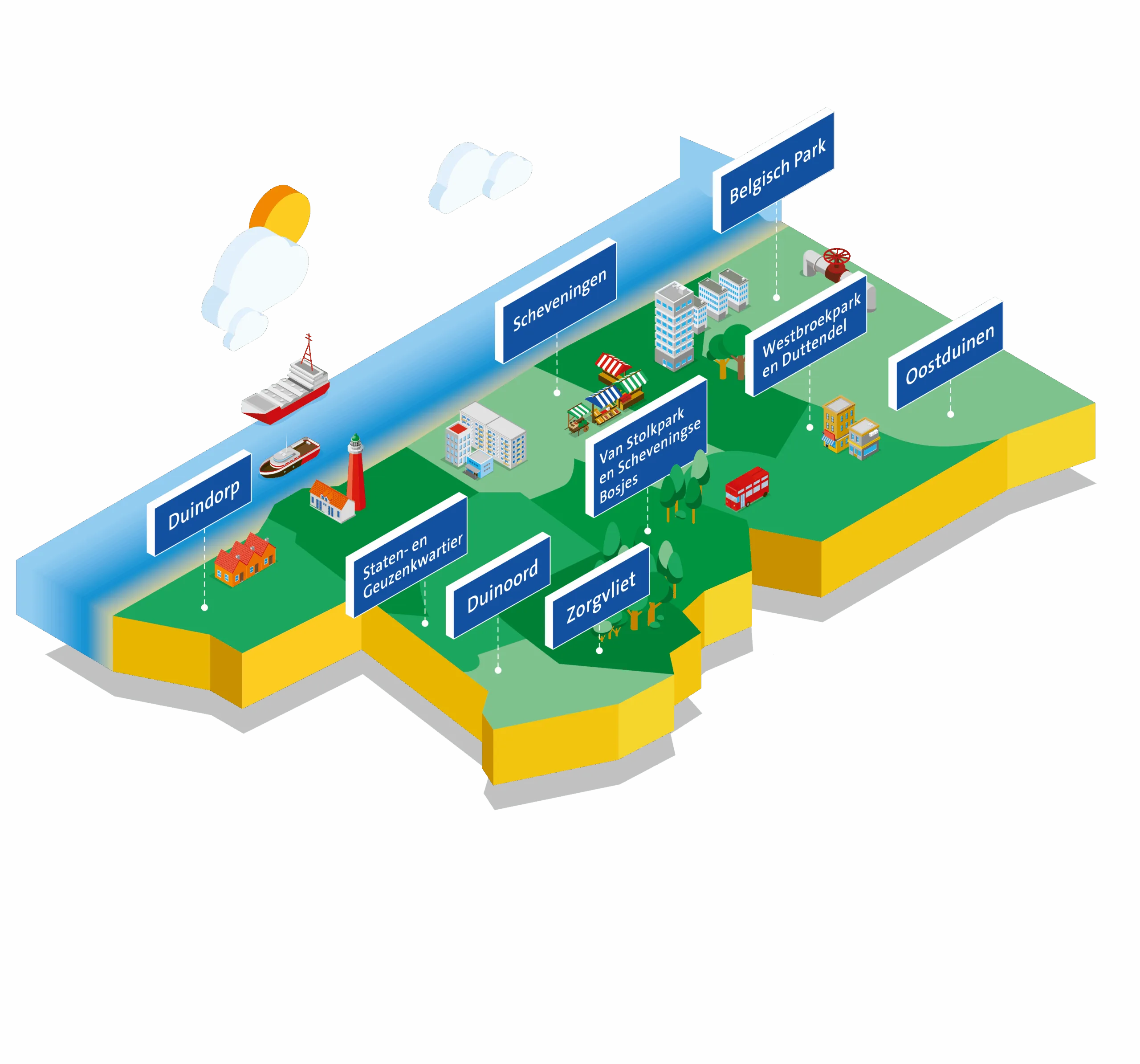 The Hague is made up of eight districts, each with its own unique character and identity. Together, these districts form the vibrant city of The Hague. But what's actually happening in these districts? Get to know the unique initiatives and projects within them and discover the diversity and dynamism that makes each district unique. From Centrum to Laak, and from sustainable projects to neighborhood initiatives, there's always something going on in every district.